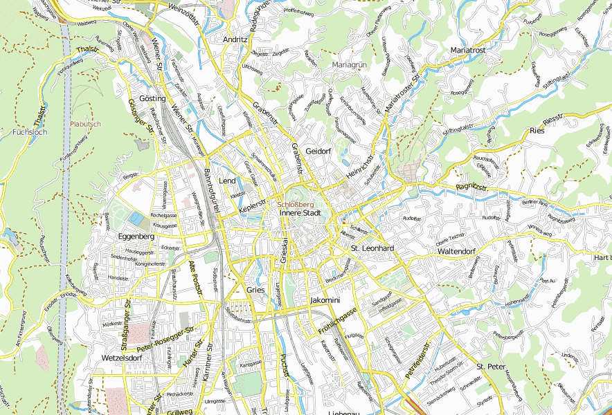 Durch diesen digitalen Steirisches Volkskundemuseum Stadtplan finden Sie die Straßen und Wege in Graz oder sehen Sie wie zahlreiche weitere Graz Touristen Kartenausschnitte nahe.